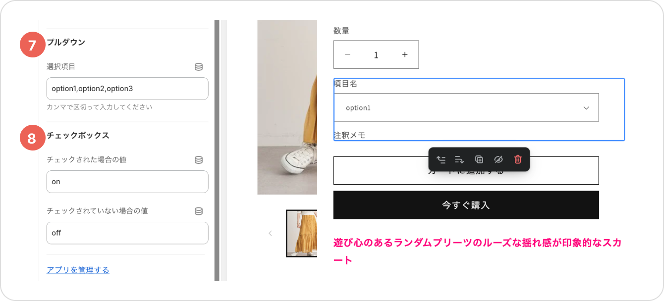 以上で商品オプションアプリを利用することが可能です。
